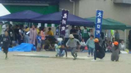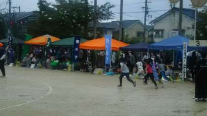朝から雨が降ったり止んだりですが、子どもたちも元気に区民運動会に参加してます。