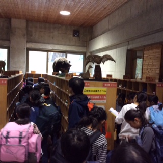 山の家に着きました。小雨が降っていますので、本館の近くまでバスが上がってくれました。くつ箱に靴を入れ、入所式を始めます。