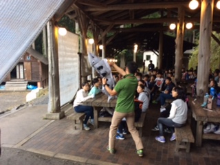 山の家の先生から魚のさばき方を聞きました。キッチンバサミを使います。うまくできるかな?