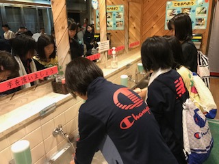 バイキングの前に手を洗います
