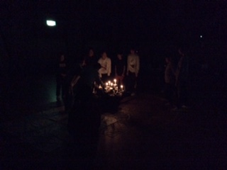 キャンドルファイヤーが始まりました。各班のめあてを発表しながら、キャンドルに火を灯していきます。