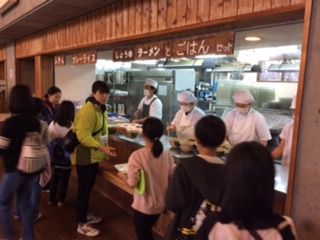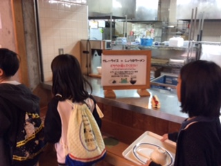 今日の昼食は、ラーメンとごはんか、カレーライスかを選択します。夕食に野外炊事でカレーを作る予定ですので、ラーメンを選択する子が多いです。