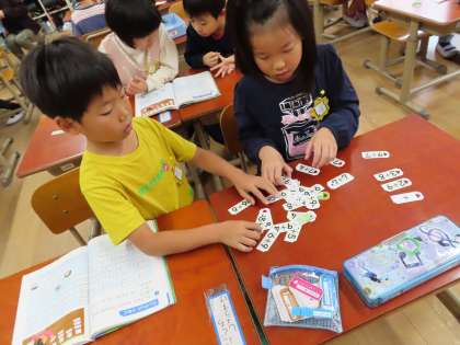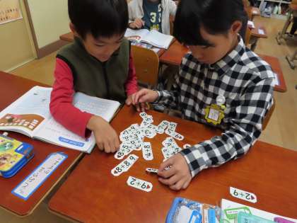 算数科の学習で,たしざんカードのなかま集めをしました。