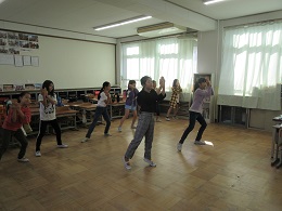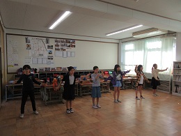 合奏を盛り上げるため,「パプリカ」のダンスの練習も頑張っています。