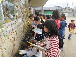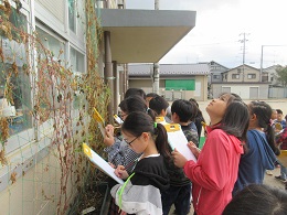 理科の学習で,ツルレイシの様子を観察しました。