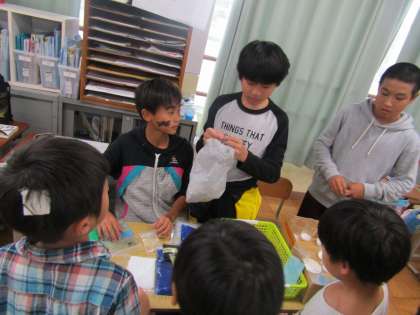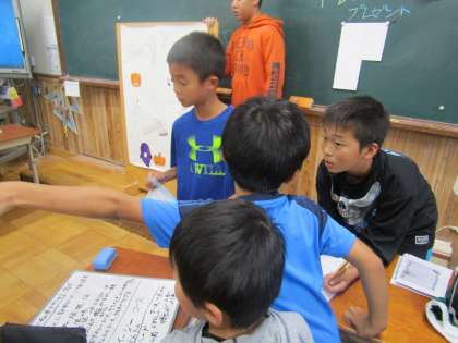 1年生が,「Trick or Treat」と6年生に伝えると,6年生が何かを1年生に!