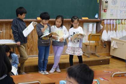 お手紙の学習では,音読劇に向けて練習を行っています。