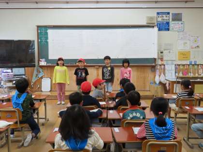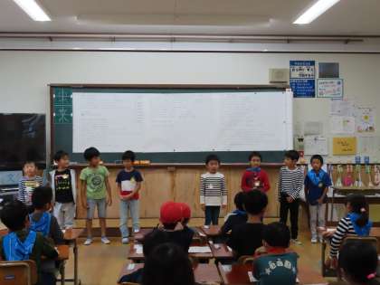 体育館での練習だけでなく,場面ごとにわかれて教室でも練習しています。身振り手振りの練習をしたり,大きな声でせりふを言う練習をしたり,どの場面の子どもたちも一生懸命がんばっています♪