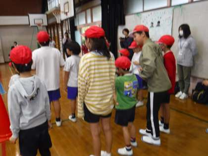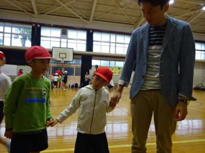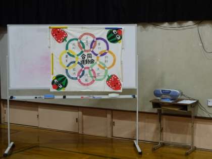 今年は,鷹峯小学校でありました。雨だったので講堂でしました。1年生には,初めての運動会!6年生にとっては最後の運動会になりました「。はじめの言葉」は大宮の6年生が言いました。「地下鉄烏丸線マラソン」は,みんなが一列に並んでスタートしました。