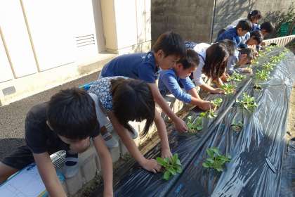 2年生 生活科 だいこんの間引き