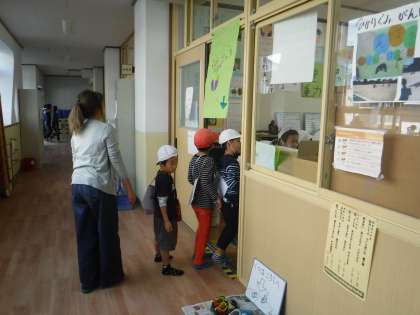 そらいろ学級と大宮保育園の年長組ひかりぐみさんと去年から交流しています。今年は「ひかりそらいろたのしいおみせやさん」を開いて来てもらいました。9月の下旬から計画して企画書を持って行き今日を迎えました。