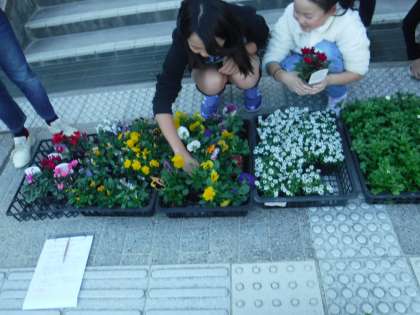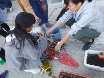 いっぱいのプランターに苗を寄せ植えにしてその後,球根も植えました。春が楽しみです。最後は,水やりをしてこぼれた土をほうきではいて掃除もしました。