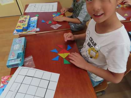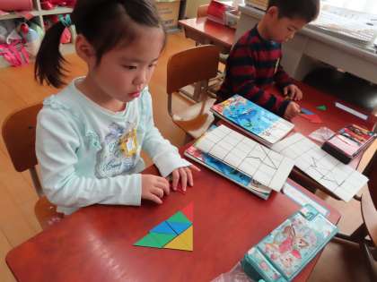 最後は,色板を並べて,自分の好きな形をつくりました。