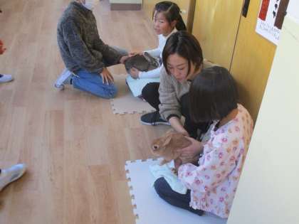 そうそう,休み時間にうさぎとのふれあいをしているのですね。
