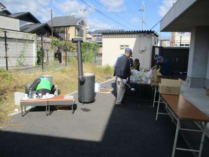 電気ガスが使えないことを想定して,薪で沸かしておられました。