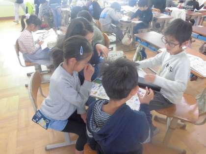 説明文を読み,どう書いたら読み手に伝わりやすいのかを考えた後に,自分たちでも文章を書きます。
