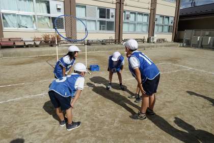 準備運動も念入りに行い,チームごとに分かれてパス練習をします。