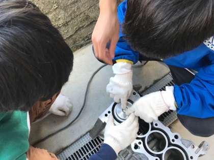 たくさんの部品をじっくりと触った子どもたちは,部品をつくる中小工場の人たちの作業のすごさや自動車一台が動くことの力に度々おどろいていました!