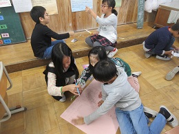 学習したことを,班の友だちと確認しながら,わかりやすく新聞にまとめていきました。