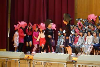 「あっ!大きな魚がきたぞ,にげろ〜!」