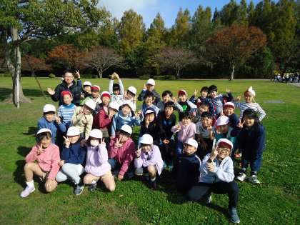 昼食後は琵琶湖を眺めながら,芝生広場で元気よくおにごっこをしました。