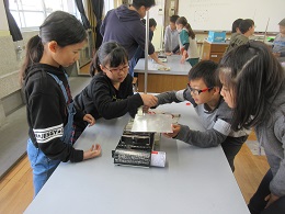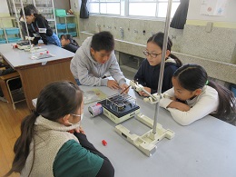 子どもたちは,鉄の棒や板に火をあてたとき,どこからあたたまるのかを実験しました。