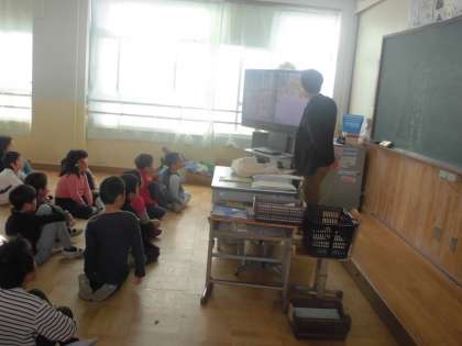 3年生のクラスにほかの先生方が読み聞かせに来てくれました。