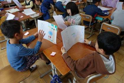 出来上がったお話を読み合い,感想を交流しました。