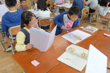 それぞれ,どんなお話を書いているのか,興味津々の様子。