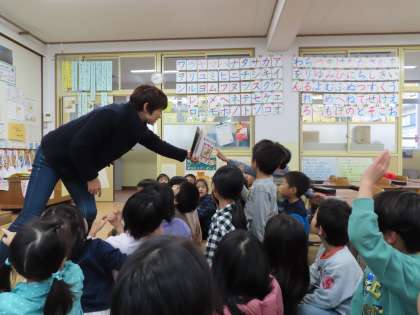 今日は,もこもこさんが教室まで本の読み聞かせに来てくださいました。おもしろい本を読んでもらって,子どもたちも大喜びでした。ありがとうございました。