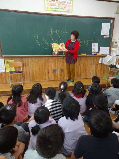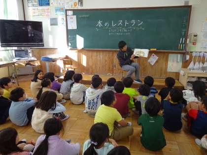 水曜日に行われた本のレストランでは,担任以外の先生が,読み聞かせをしてくれました。