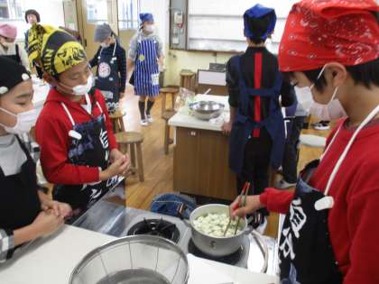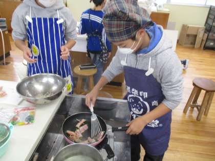 茹でたり,焼いたり,炒めたり…グループによって調理の仕方が違います。