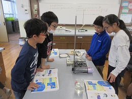 子どもたちは,水のあたたまる様子を実験しながら調べました。