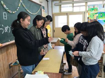 休み時間にハッピーバースディの曲をみんなでうたい,お誕生日係からカードのプレゼントをもらいました。