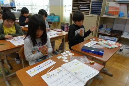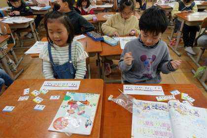リズムカードを使って,おまつりの音楽を考えました。