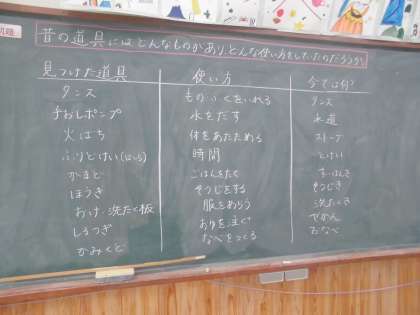 社会見学で見つけた昔の道具の使い方や今でいうとどんなものにあたるのかを考えました。