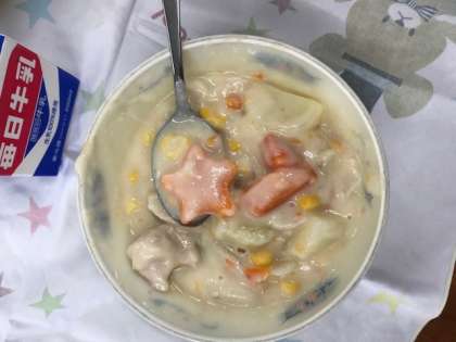 今日の給食はクリームシチューでした。