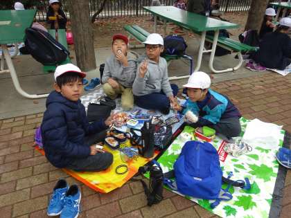 たくさん歩いたので,ほっと一息つきました。午後からもたくさん歩くのでパワーをチャージしました。