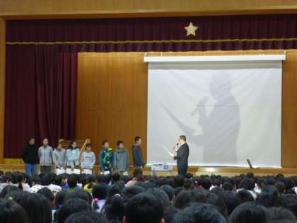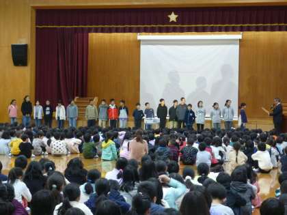陸上記録会や大文字駅伝予選会で活躍した児童が表彰されました。