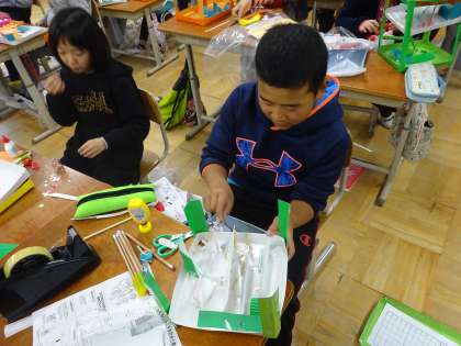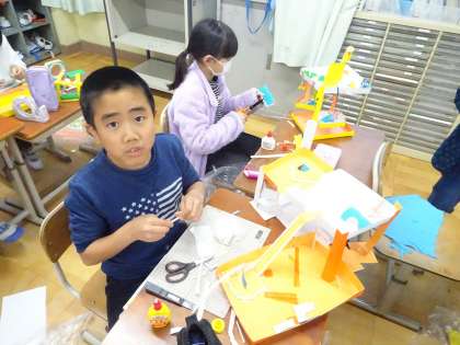 ビー玉が転がる様子からさらにアイディアが浮かぶようで,手を止めることなく集中して取り組みました。
