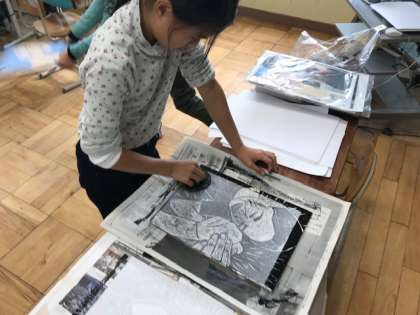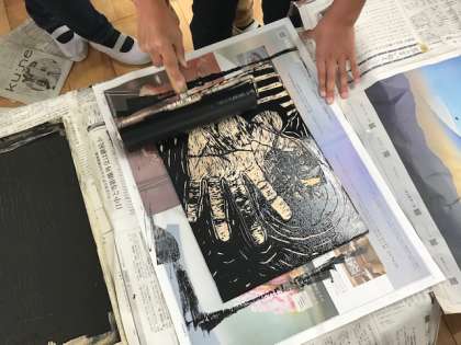 子どもたちは,ワイワイと版画を刷っていました。
