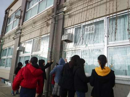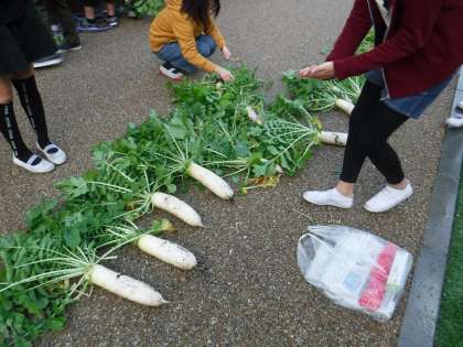 今日の園芸委員会は,6年生はヘデラで飾りを作りました。5年生は,緑のカーテンの片付けをしました。その後,大根の収穫をしました。