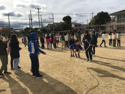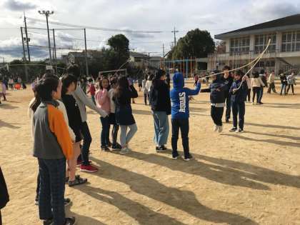 来週月曜に行われるおおなわ大会に向けて,練習をしています。