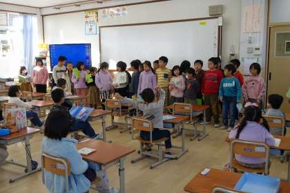 1年生に,招待状を渡しに行きました。