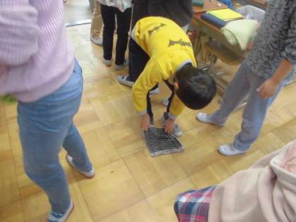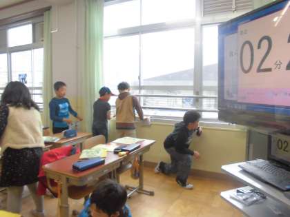 まずは持ってきた汚れてもいい布で教室をそうじしました。