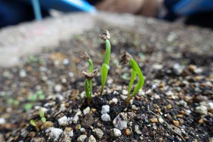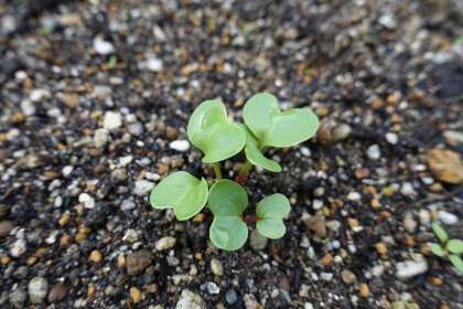 以前種まきをした野菜の芽が,出てきました。