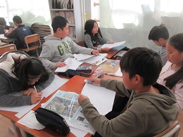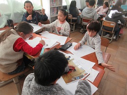 子どもたちは,運動会でやったソーラン節をテーマに絵を描いていきました。