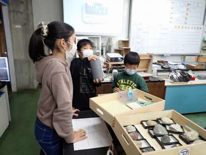 休憩後は,砂を「れき・砂・泥」にふるいで分ける作業をしました。