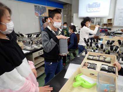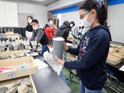 休憩後は,ふるいを使って「れき・砂・泥」に分けました。