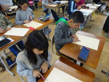 彫刻刀の使い方を学びました。けがをしないように,使い方をきちんと守って作業することができました。